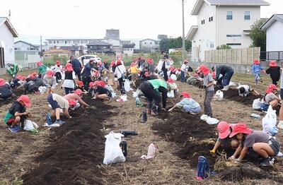 子どもたちは、地域の方々に教わりながら一生懸命作業に取り組みました。