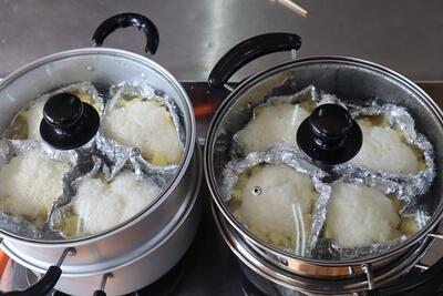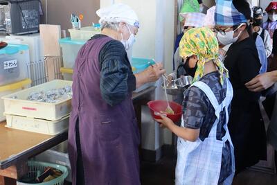 地域の方にお越しいただき、ひとり分ずつ分けて蒸していただきました。