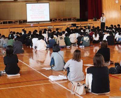 都城警察署より3名の方をお招きして、3年生を対象に非行防止教室を行いました。