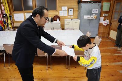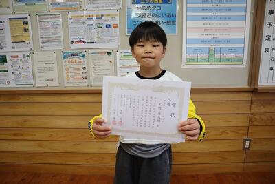 そこで、校長室で賞状授与式を行いました。入賞おめでとうございます。