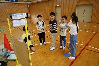 招待された1年生も、遊び方の説明を聞いて、楽しく活動していました。