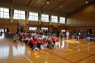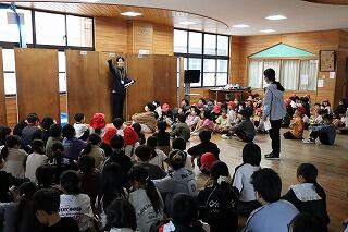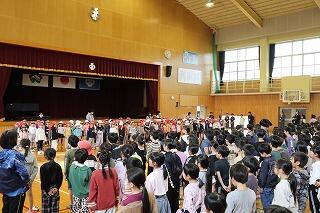 体育館に全校児童が集まり「運営・集会委員会」の進行で