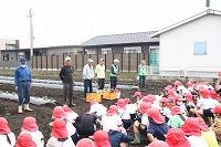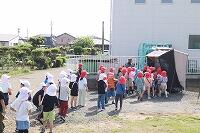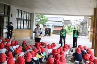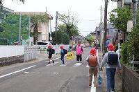 軍手、水筒などの準備物の確認、交通安全等についての話を聞いたら、いよいよ畑に向けて出発です!