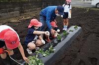 みんな手に取った苗を大事そうに持ちながら、植える向きや深さなどに気を付けて丁寧に作業していました。