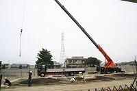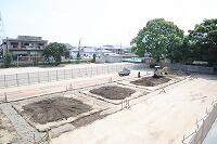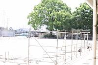 5月から小学校の運動場で仮設校舎建設のための工事が始まっています。