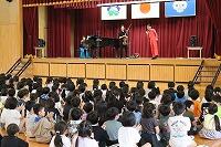 途中でバイオリンの絃の数や材質についてのクイズに答えたり、音楽に合わせて手拍子をしたりと、西小っ子たちも興味津々な様子で活動していました。