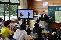 また、3校時には6年生教室で教育実習生による「災害時の備蓄食品」についての授業があり、食品をローリングストックをすることや備蓄食品を「主食」「主菜」「副菜」「飲料・間食など」の4つに分類して考えることなどについて学習しました。