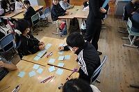 食品の分類について話し合い、付箋にたくさんの食品を書いて見比べる活動を通して、バランスよく食品を備蓄することの大切さを感じている様子でした。
