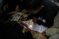 児童たちは、豆電球に明かりをつけるために、乾電池や導線とのさまざまなつなぎ方を考え、意欲的に調べました。