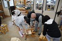 12月11日(木)、本日は小学6年生を対象にした「ものづくり体験教室」が実施され、建築大工、畳、洋裁、和裁、表装、塗装、板金といった多岐にわたる分野の専門家が指導にあたりました。