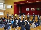 全校朝会で、体育委員会の児童が冬の体力作りについて発表をしました。寒さに負けない体を作るために、日常生活の中で、取り組みやすいものを紹介してくれました。まだまだ寒い日が続きますが、しっかりと体力をつけて、乗り切ってほしいと思います。また、後半では、体力テストで特に頑張った児童への表彰もありました。暖かい春が待ち遠しいです。