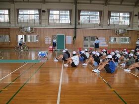 交通安全協会の方々の指導で交通安全教室を行いました。1・2・3年生は、歩道と車道のきまりを学び、実際に横断歩道の渡り方、安全確認の仕方を練習しました。4・5・6年生は、歩道と車道のきまり、自転車の点検、安全な乗り方を学び、実際に自転車の運転の仕方、安全確認の仕方を練習しました。子どもたちが、学んだことを生かして、これから安全に過ごしてほしいと願っています。