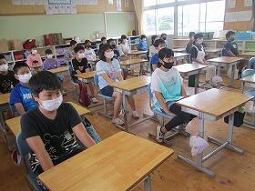 感染対策の為、今回は校内放送による始業式を行いました。5年生の代表児童の作文発表では、学習や2学期行事のことなどでがんばりたいことを堂々と発表していました。