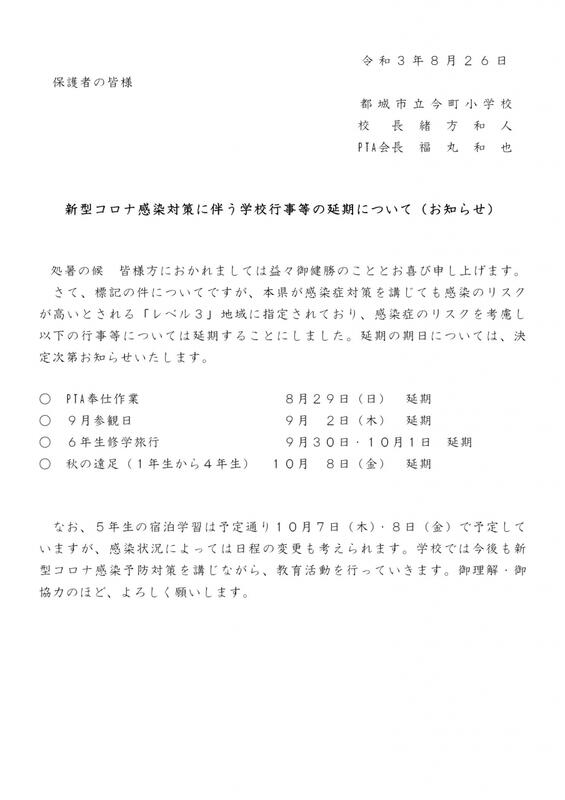 2学期行事予定等の変更について(お知らせ)