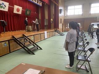 大型連休明けの月曜日、欠席者0でした。この日、運動会の全体練習の1回目をしました。開会式の並び、礼の仕方、児童代表誓いの言葉、ラジオ体操、開会式の退場など、全校児童がきびきびと真剣に練習に取り組む様子が見られました。高学年のリーダーが模範となって、下級生に動きや態度を示していました。運動会がとても楽しみです。