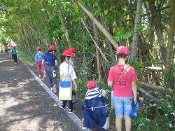新1年生を迎え、新しい登校班になりました。登下校時の注意や危険箇所の確認を地区担当者と一緒に行いました。