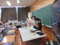 3年生と5年生の算数科の授業研究会が行われました。3年生は、「あまりのあるわり算」についての授業でした。ノートやタブレット端末、実物を使って、自分で考えたり話し合ったりしながらどの児童も自分事として取り組む姿が見られました。5年生は、平行四辺形の「面積」の求め方の学習でした。プリントを切ったり、書き込んだり、タブレット端末を使ってそれぞれの方法で答えを求めようとしていました。また、考え方についてタブレット端末のフォーム機能を使って学級みんなで共有する場面もありました。一人一人が主役の授業へ今町小学校の授業改善を推進しています。