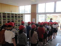 この日は、6年生とのお別れをする「お別れ集会」をしました。5年生が計画・準備をして、学年縦割りのチームを作り、体育館での鬼ごっこや、校内のウォークラリーをしました。ウォークラリーでは、チームで校内の各所をめぐり、そこで5年生や担当の先生がクイズを出しました。その後、体育館で1年生から5年生までの下級生と6年生とのお別れ集会をしました。下級生からお礼のメッセージを伝えると、6年生はうれしそうに答えていました。遠足は前日の雨のため校内遠足になりました。