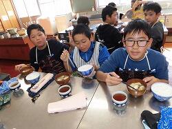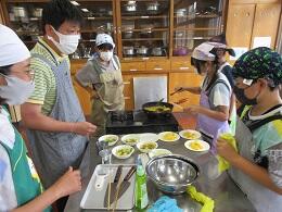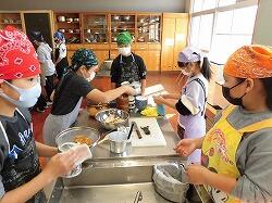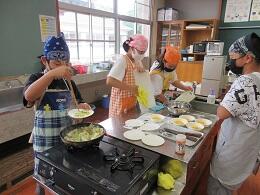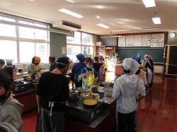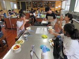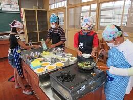 6年生は、家庭科の調理実習で、スクランブルエッグと野菜炒めを作りました。各グループで役割を分担し、野菜を切って炒め、たまごを割って加熱し、お皿に盛り付けました。家庭で料理の経験がある児童もいて、手際よく調理する様子が見られました。料理ができあがると、みんなでおいしそうに食べていました。家庭科は生活に直接結びつく体験学習で、児童は意欲的に取り組んでいました。