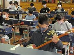 ほとんどの子が三味線を触るのが初めてでしたが、必死になって取り組んでいました。来週も2回目の学習を行う予定です。