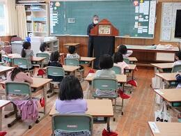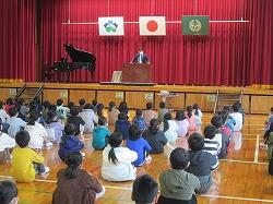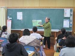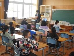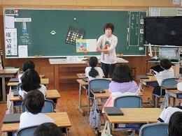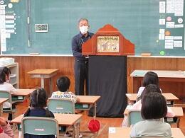 本校では、地域のボランティアの方々に、毎週火曜日の朝に10分間、子どもたちに読み聞かせ・紙芝居をしていただいています。この日は、1年・2年・3年の学級で読み聞かせ・紙芝居をしていただきました。子どもたちは、絵本や紙芝居の絵を食い入るように見つめ語りを聞いていました。