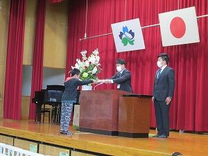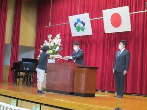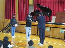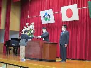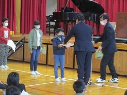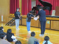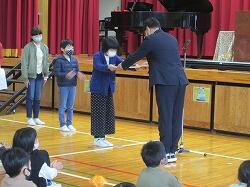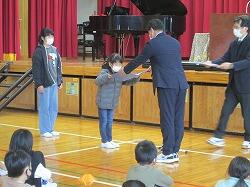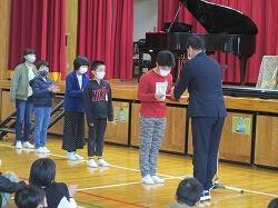 2学期学校図書の多読賞の表彰、五十市地区人権標語の表彰、県人権同和ポスターの表彰、県造形教育研修会の表彰でした。