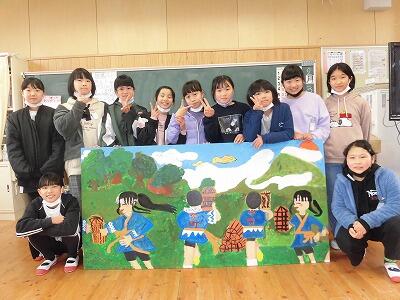 このパネルは3月に計画されているイルミ&アートフェスタのイルミネーションの展示物として飾られるものです。5年生全員が、2枚のパネルに今町ならではの装飾を考えて作成してくれました。写真で紹介している作品です。