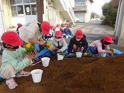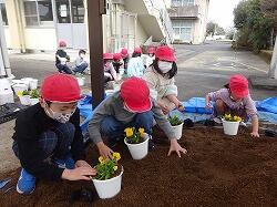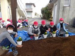 1年生は初めての経験でしたが、パンジーとペチュニアの花の苗を鉢に移植する作業をしました。とても上手に移植ができました。