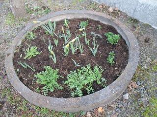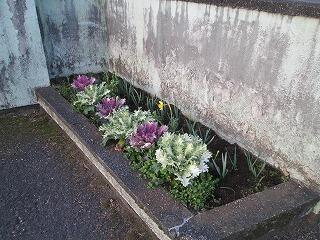 お花は、スイセン、葉牡丹、ノースポール、ネモフィラ、ムスカリ等です。