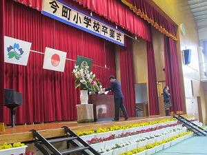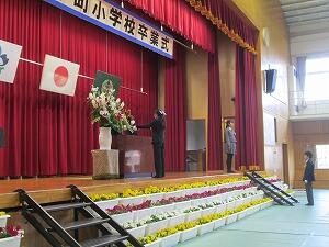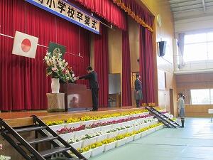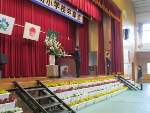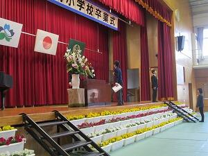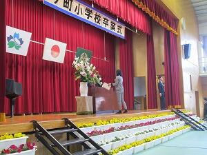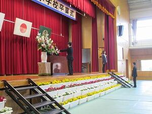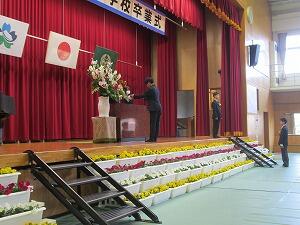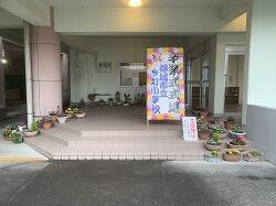 体育館前に飾ったお花は、地域の方に提供していただきました。