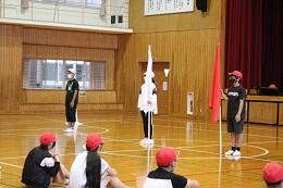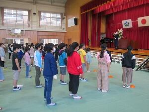 大型連休明けの月曜日、欠席者0でした。この日、運動会の全体練習の1回目をしました。開会式の並び、礼の仕方、児童代表誓いの言葉、ラジオ体操、開会式の退場など、全校児童がきびきびと真剣に練習に取り組む様子が見られました。高学年のリーダーが模範となって、下級生に動きや態度を示していました。運動会がとても楽しみです。