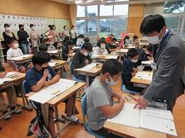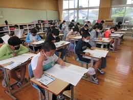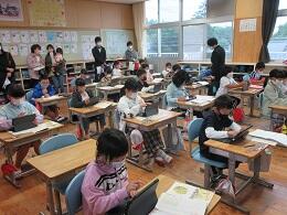 新学期が始まって1週間あまりがたちました。子どもたちは、新学年で新しい先生にも慣れ、授業を一生懸命受けています。1年生は体育で「かけっこ」、2年生は算数で「時間」、3年生は体育で「50m走」、4年生は国語で「書写(毛筆)」、5年生は国語で「漢字の練習」をしていました。6年生は全国学力調査で3教科のテストに取り組んでいました。