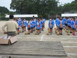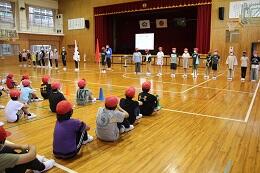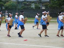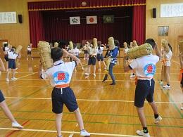 5年生、6年生は、運動会に向けて「八反俵踊り」の練習を前の学年から積み重ねています。この日は、運動場で、踊りの保存会の方々の指導と演奏で、最後の練習をしました。子どもたちは、以前よりも上達し、俵を使っての大きく軽やかな動きで踊ることができるようになっています。いよいよ次の日曜日は運動会本番。練習の成果を精一杯出してほしいと願っています。