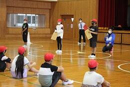 4日(金)にお別れ遠足がありました。元々は校外で実施予定でしたが、新型コロナ感染対策のため校内でお別れ遠足をしました。全校での集会はできませんでしたが、6年生が小グールプで各学級を訪問し、お別れ会を実施することができました。また、5年生が中心になってクイズラリーを計画し、学級単位で楽しく活動することができました。