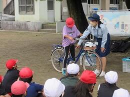 交通安全協会の方々の指導で交通安全教室を行いました。1・2・3年生は、歩道と車道のきまりを学び、実際に横断歩道の渡り方、安全確認の仕方を練習しました。4・5・6年生は、歩道と車道のきまり、自転車の点検、安全な乗り方を学び、実際に自転車の運転の仕方、安全確認の仕方を練習しました。子どもたちが、学んだことを生かして、これから安全に過ごしてほしいと願っています。