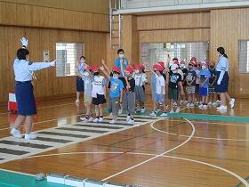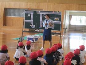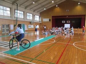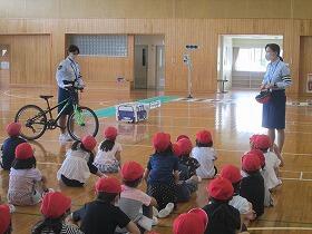 上学年と下学年に分けて交通安全教室を実施しました。都城市警察署の交通指導員の方に指導していただきまいた。歩道の歩き方や交差点や横断歩道での確認の仕方、自転車の点検や自転車運転時の交差点や横断歩道の横断の仕方など、学年の発達段階に応じた指導でした。