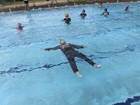 衣服を着たままでの泳ぎの体験と仰向けになって体を浮かす体験をしました。