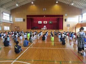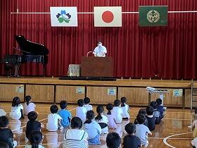 校長先生からは、夏休みのきまりを守ること(火・水・車・人)と感染症対策を引き続き行っていくこと、学習のまとめをしっかりしておくことについて話がありました。