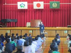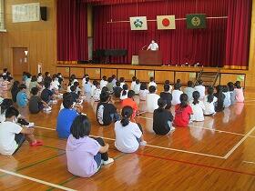 感染症についてのお話、県の読書感想画コンクールに入賞した児童の表彰、新体力テストでA判定だった児童の表彰、最後に本日から本校に着任された新しい先生の紹介がありました。