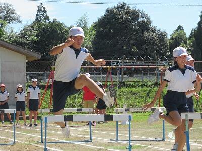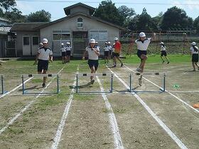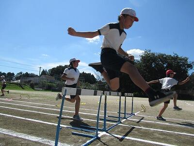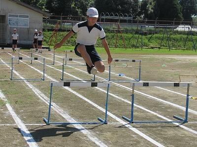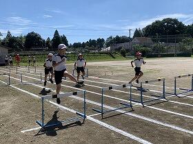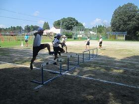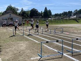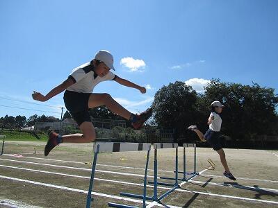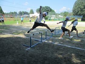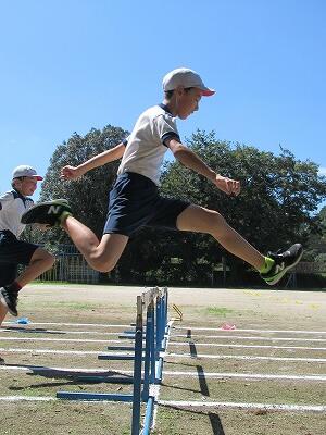 今日も午前中ハードル走の学習をしました。2時間でしたが、小休憩や給水を入れながら活動をしました。昨日の様子に比べると、足の運び(踏切り・ぬき足)もスムーズになり、リズムよく走ることができていました。