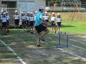 今日が2回目の授業でしたが、6年生を対象に妻ヶ丘中学校の保健体育の先生が陸上運動の指導をしていただいています。