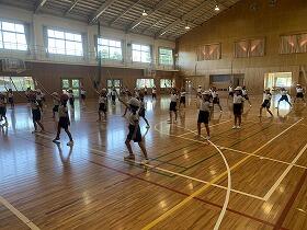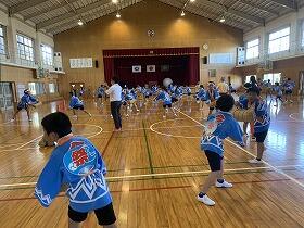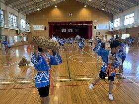 運動会の練習が連日行われていますが、5・6年生を対象に俵踊りの練習をしました。俵踊り保存会の方々に来ていただき体育館で2時間汗を流しました。
