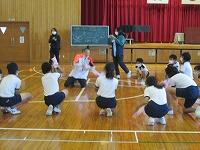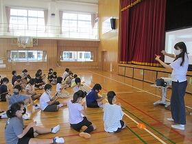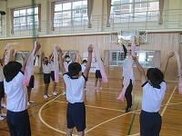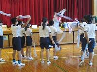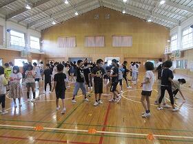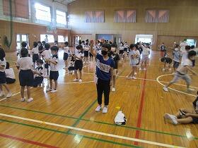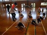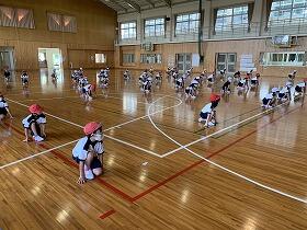 グループでの活動や全体での活動をしました。体を弾ませたりジャンプをしたりして様々な動きの要素を取り入れ、最後は発表会をしました。子どもたちは、主体的に楽しく活動していました。