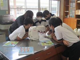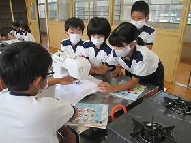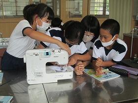 糸のかけ方やぬい方など基本的な事を学習し、グループごとにミシンを使って縫い方の練習をしました。練習後は、エプロンを作る予定です。