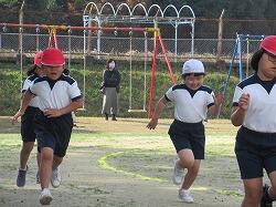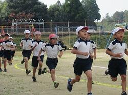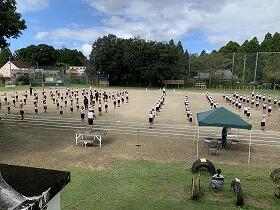 運動会に向けての練習が今週から始まりました。感染症対策のため、間隔をとりながら練習しています。