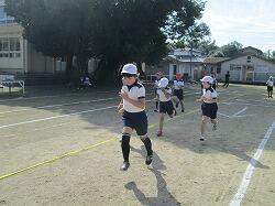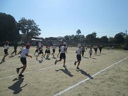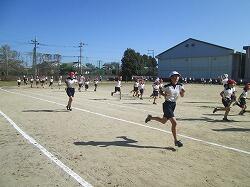 今日から全校による持久走の練習が始まりました。校内の運動場を全員が走るので、3つのレーンに分けて走ります。今月の19日(金)に持久走大会を行います。