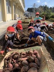 子どもの顔の大きさぐらいある大きな芋もあり、子どもたちは大きな芋をほりあげる度に歓声をあげて、収穫の喜びを実感していました。
