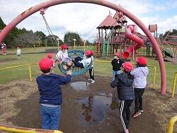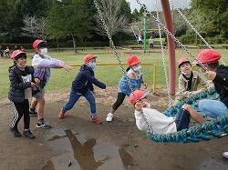 体を弾ませたりジャンプをしたりして様々な動きの要素を取り入れながら、子どもたちは楽しく活動していました。