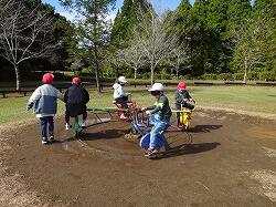 3つのグループに分かれて、子どもたちは夢中になって芋掘りをしていました。