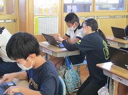 南九州大学の学生が、タブレットを使うICT学習の支援員として、1年生と5年生の学習支援をしていただきました。